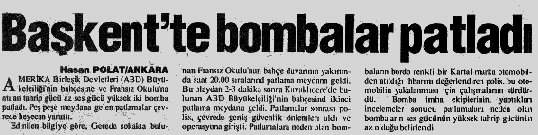 HALKIN DEVRİMCİ ÖNCÜLERİ GENEL KOMİTESİ'NİN 21 NO'LU BİLDİRİSİ *** ABD Ankara Büyükelçiliği *** İngiltere Ankara Büyükelçiliği *** Fransa Ankara Büyükelçiliği *** T. C. Başbakanlığı *** T. C. Dışişleri Bakanlığı Türkiye İşbirliği ve Kalkınma Ajansı bombalanmıştır. |