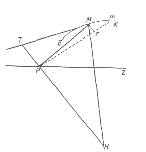 BMK eğridir. MT onun tanjantıdır. P, koordinatların kutbu ya da orijinidir. PZ kutupsal eksendir. PM, M noktasının ordinatıdır (Engels buna "gerçek apsis" diyor; günümüzde ise yarıçap vektörü diye adlandırılıyor). Pm, M'ye son derece yakın olan m noktasının ordinatıdır (Engels bu yarıçap vektörü için "diferansiyel sanal apsis" diyor). MH, MT tanjantına diktir. TPH, MP ordinatına diktir. Mr, PM yarıçapı ile gösterilen eğridir MPm son derece küçük bir açı olduğundan, PM ile Pm paralel kabul edilir. Mrm ve TPM üçgenleri de Mrm ve MPH üçgenleri benzer üçgenler olarak kabul edilir. -336.